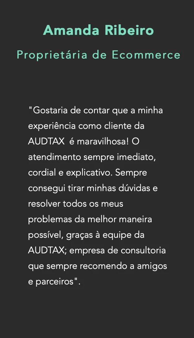 As representações de ganhos e receitas feitas pela Audtax Assessoria e Consultoria, anunciantes/patrocinadores (coletivamente, "Audtax Academy") são declarações aspiracionais apenas de seu potencial de ganhos. O sucesso da Audtax Corporation depoimentos e outros exemplos usados são resultados excepcionais e atípicos e não pretendem ser e não são uma garantia de que você ou outros alcançarão os mesmos resultados. Os resultados individuais sempre variarão e os seus dependerão inteiramente de sua capacidade individual, ética de trabalho, habilidades e experiência de negócios, nível de motivação, diligência na aplicação dos Programas Audtax Corporation , a economia, os riscos normais e imprevistos de fazer negócios , e outros fatores.